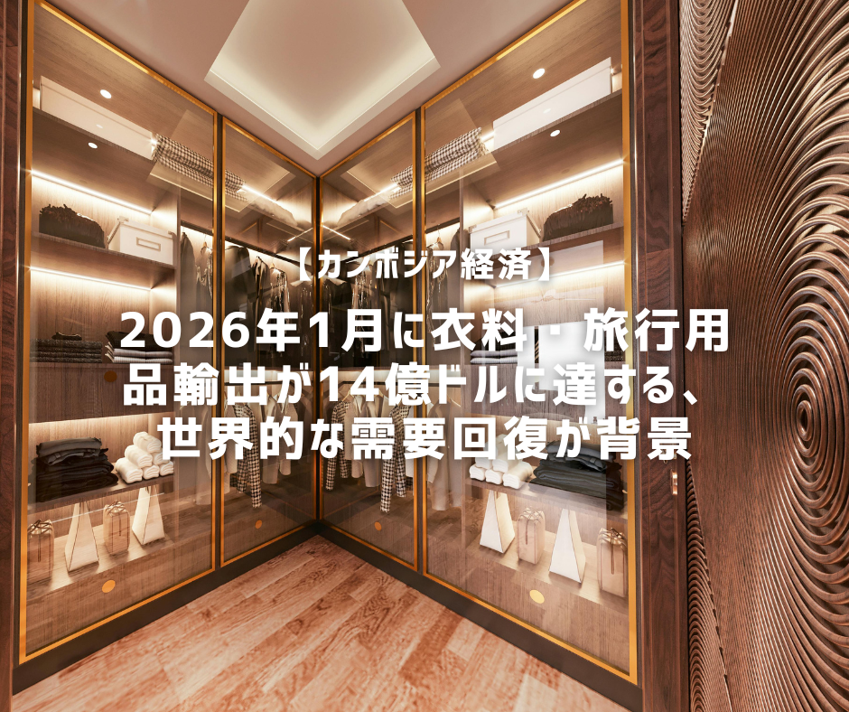 カンボジアの主要輸出品である衣料・ファッション関連商品と旅行用品の2026年1月の輸出額が前年同月比7.2%増の約14億ドルに達しました。この伸びは世界的な消費者需要の回復と直結しており、多くの市場でカンボジア製品が選ばれています。